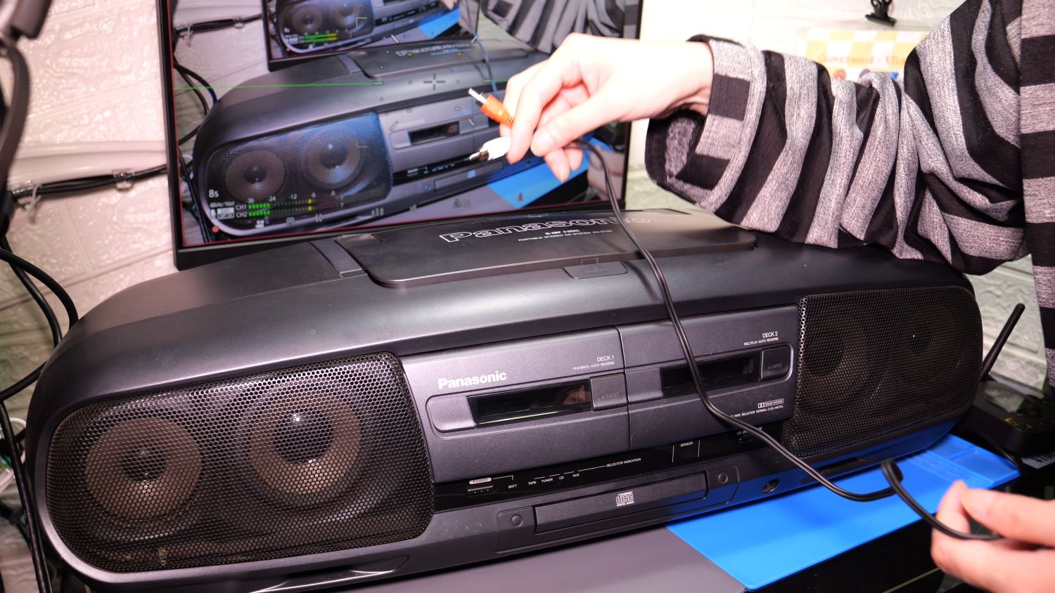 Panasonic RX-DT99。『コブラトップ』で有名な1990年代初頭のラジカセです。ジャンカー気質の人間にとってはご褒美みたいな存在。今でもメンテしながら使っていて、カセットもCDも一応動いています。