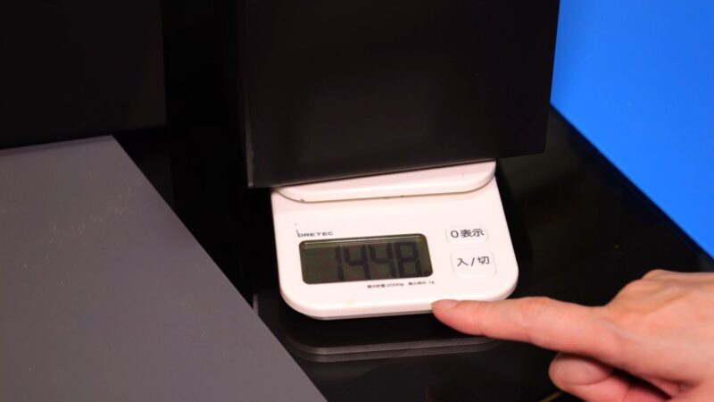アンプ内蔵側が 1606g、非内蔵側が 1448g。合計で約3kg。