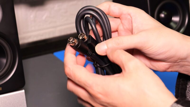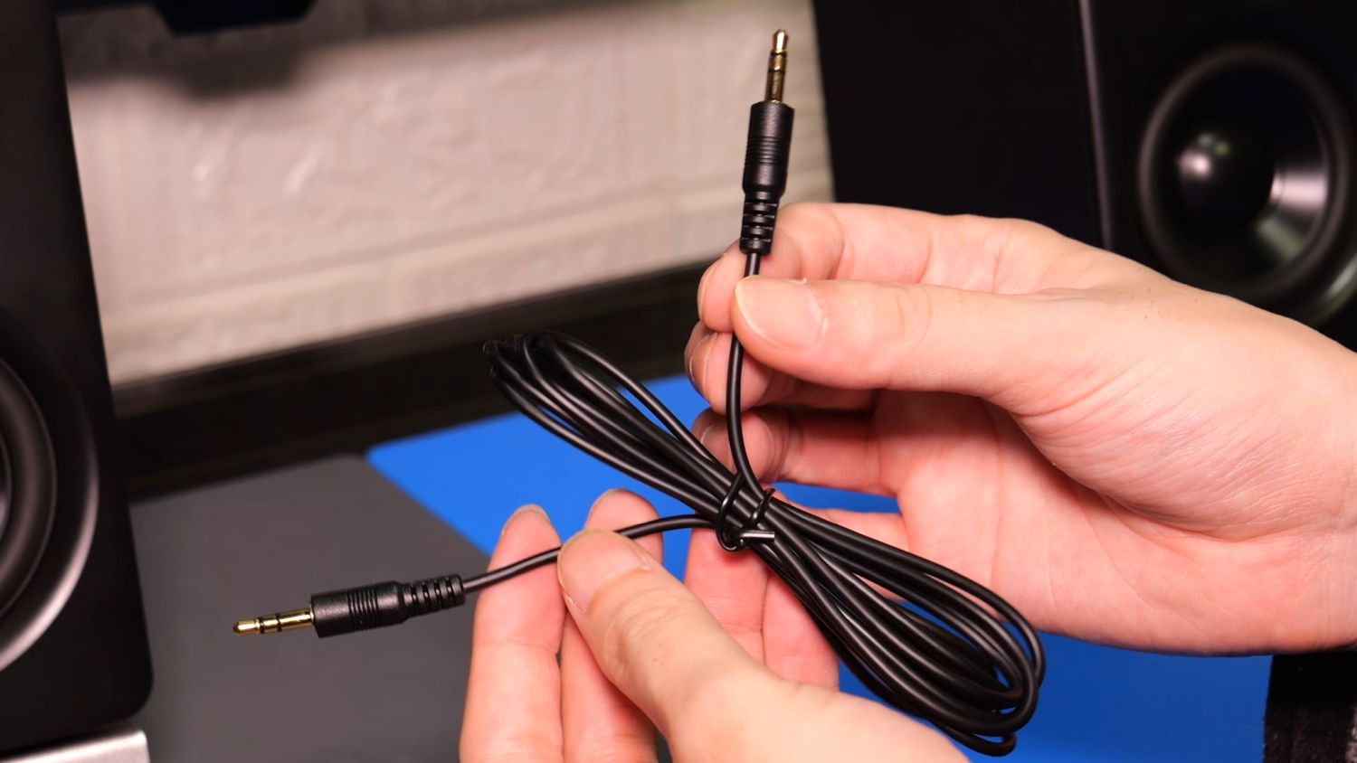 RCA→3.5mm変換ケーブルは、正直ちょっと細くて安っぽい印象。