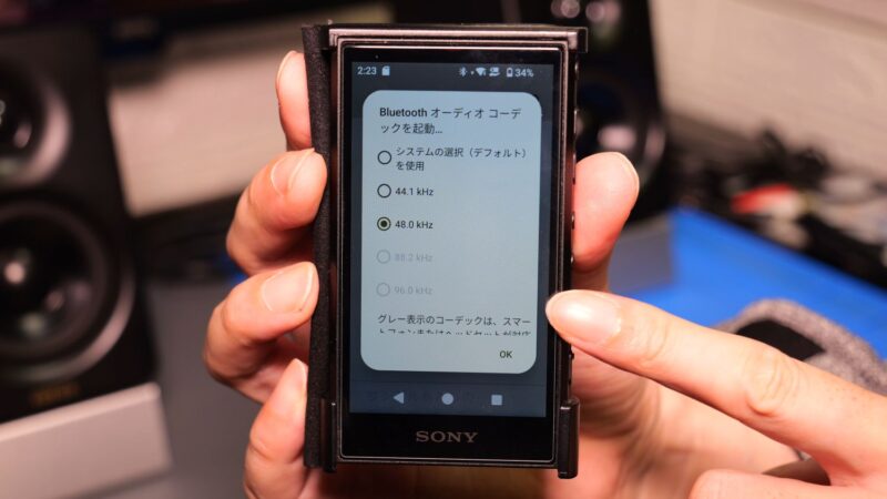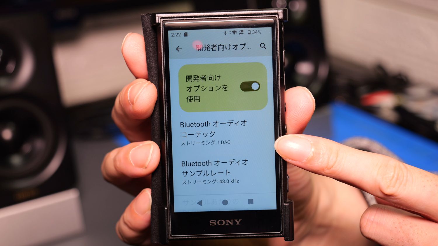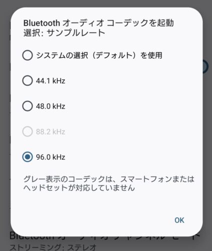 現在使用中のコーデックとサンプリングレートは、Androidの 開発者向けオプション で確認できます。