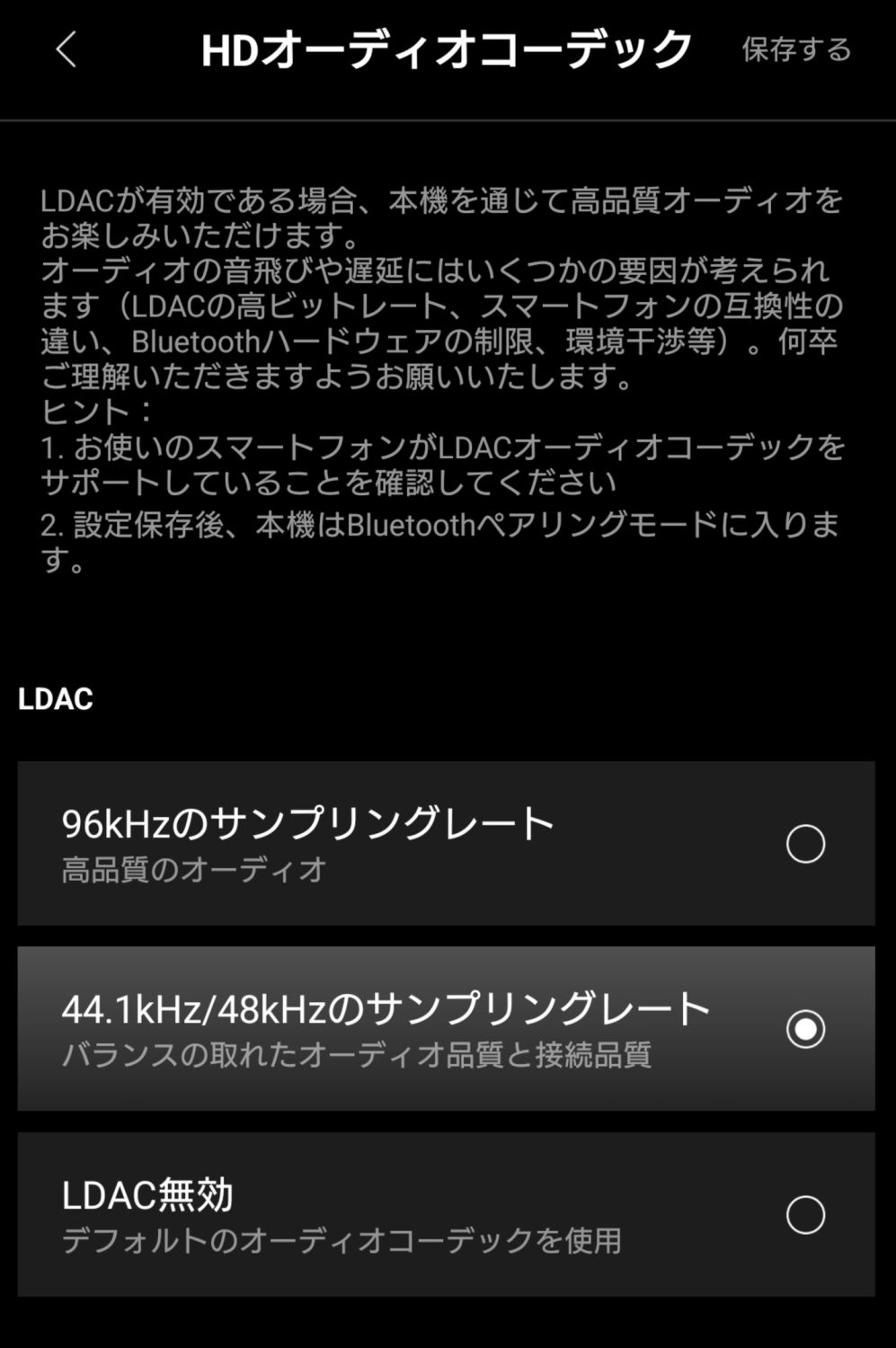 Bluetoothで接続し、コーデックを確認すると LDAC になっていました。