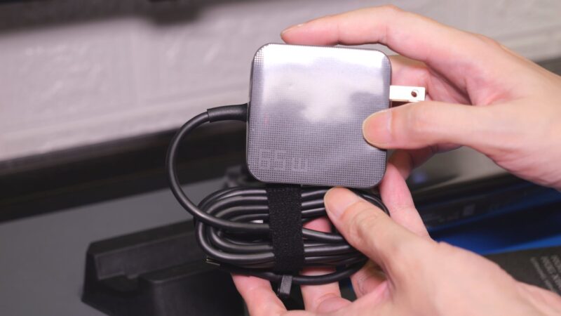 65W出力ですが、ドックなどを中継する場合はその分電力をとられるので100Wのアダプターを付けてほしかったかも。