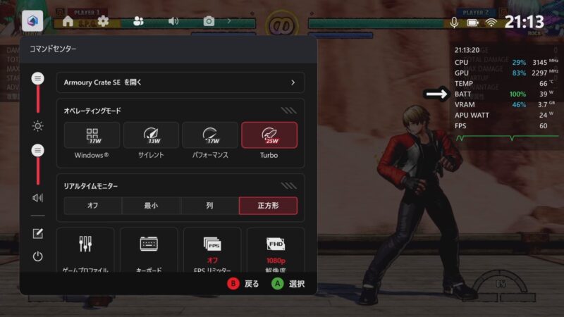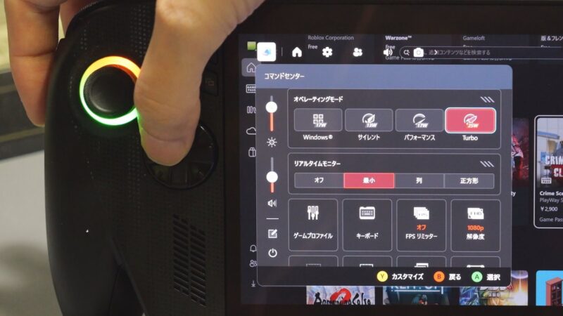 コマンドセンターのボタンを押すとTDPなど各種設定がパッドで行える。