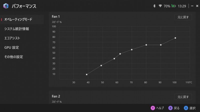 手動はTDPとファン速度を自分で設定可能。