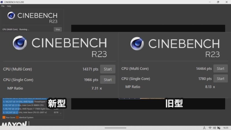 かなり性能アップしているのではと思いましたがマルチは旧型とほぼ同じ数値。
