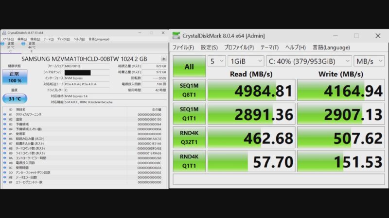SSD速度はPCIe4.0の標準的な速度のものといった感じでしょうか。