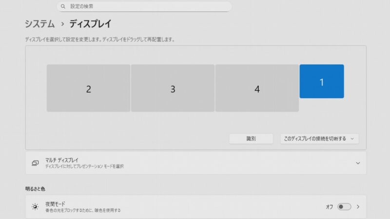外部モニターに3画面出すと本体モニターは無効になります。