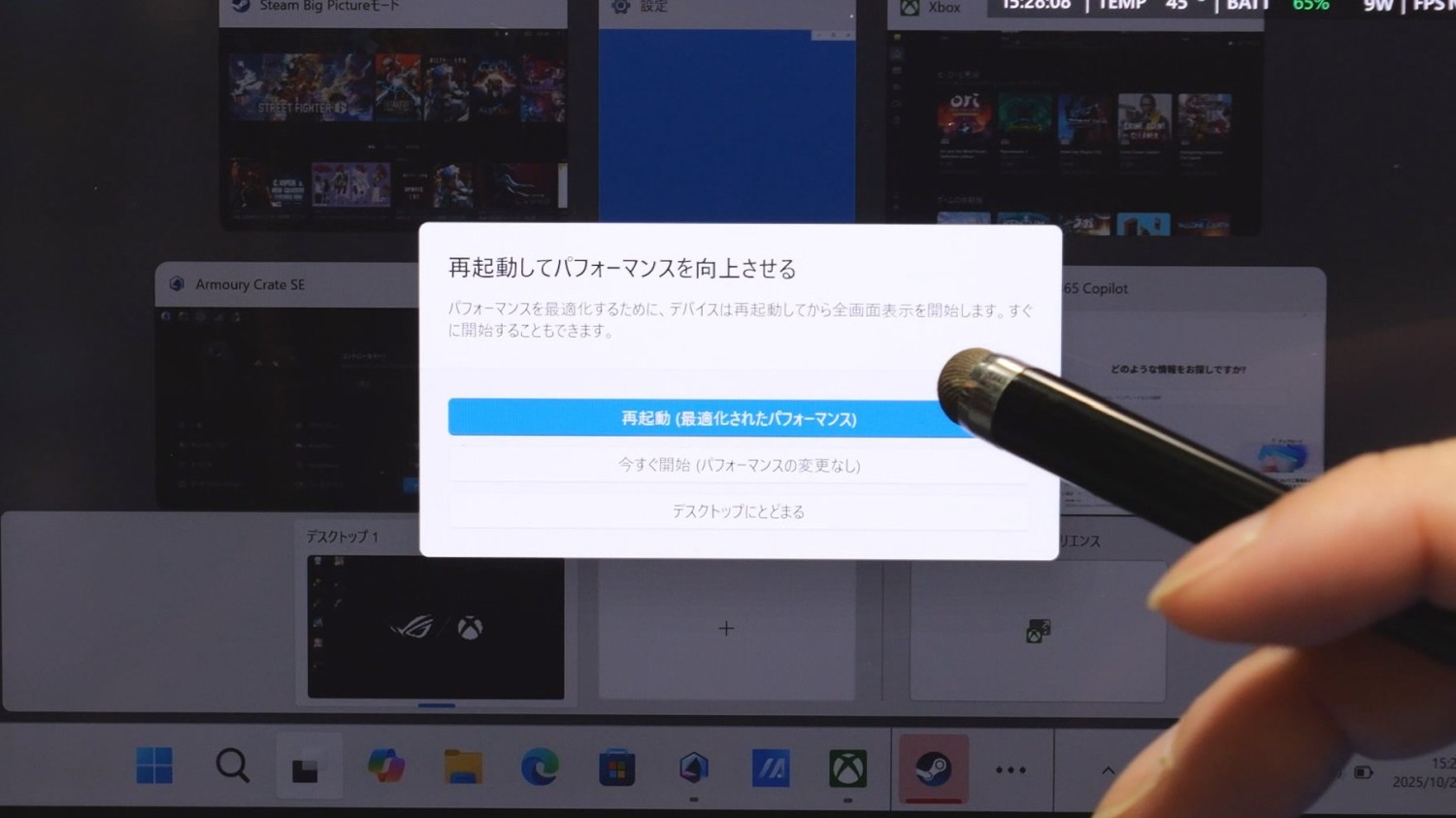 ただ、XBOX UIに戻るときに再起動をお勧めされる。