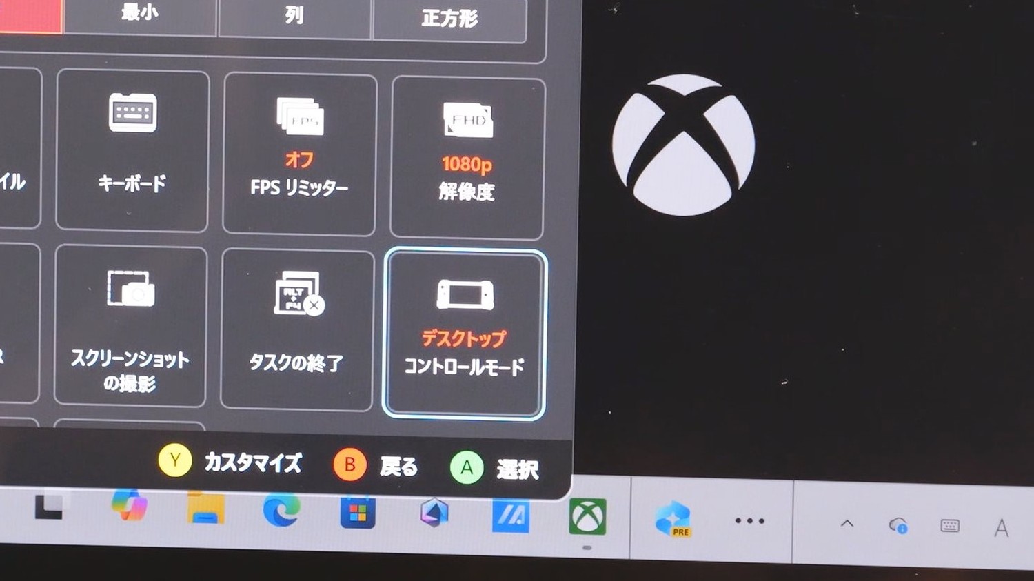 これはXBOXボタンからもアクセス可能。